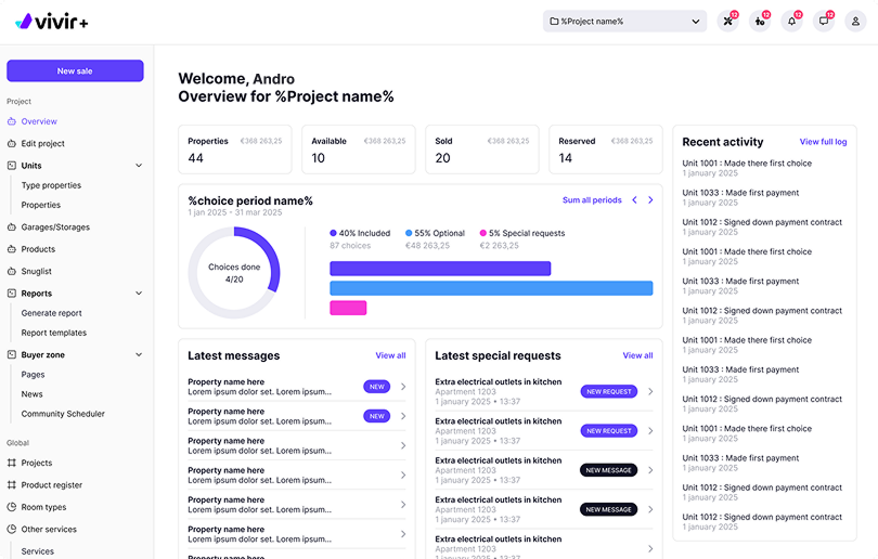 From sales and design choices to inspections, documentation, and everyday living services, Vivir+ puts everything in one place. No more scattered papers, endless phone calls, or missed deadlines – just clarity, convenience, and control.