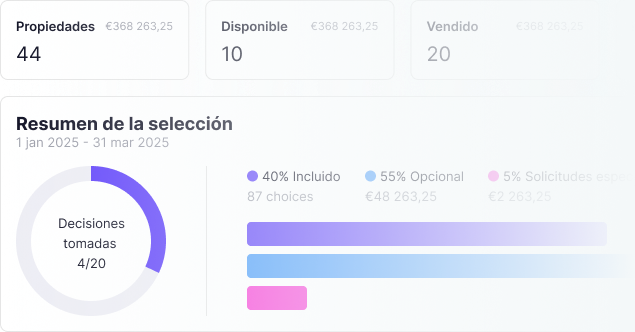 Estructura cada proyecto una vez. Gestiona ventas, mejoras, pagos y posventa en una sola plataforma conectada.